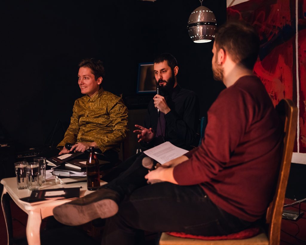 Sama promocija zbirke bila je održana 11. marta u Kvaci 22. Pored mene, u razgovoru su učestvovali Ivan Isailović i Miloš Živković, njih možda znate preko youtube kanala „Bookvalisti“ gde govore o svetskoj i domaćoj književnosti, modernim naslovima, klasicima, poeziji, kritici etc. Zbog toga su bili odlični sagovornici, pogotovo kad se uzme u obzir koliko se u mojoj zbirci pozivam na tradiciju i intertekstualna igranja, i još jednom im se zahvaljujem na vrsnom razgovoru bez kog bi sama promocija bila uboga i monotona. Događaj su fotografisali Jelena Petrović, moj nekadašnji mentee iz Žiške koja je definitivno prevazišla svog učitelja u zanatu, i John Smith, majstor fotograf pesničkih krugova koji dokumentuje pesničke događaje i ljude iz puke ljubavi prema zanatu: kako poetskom, tako i fotografskom, i čiji radovi će ostati živi i nakon što svi autori koje je ovekovečio fotografijom umru.
